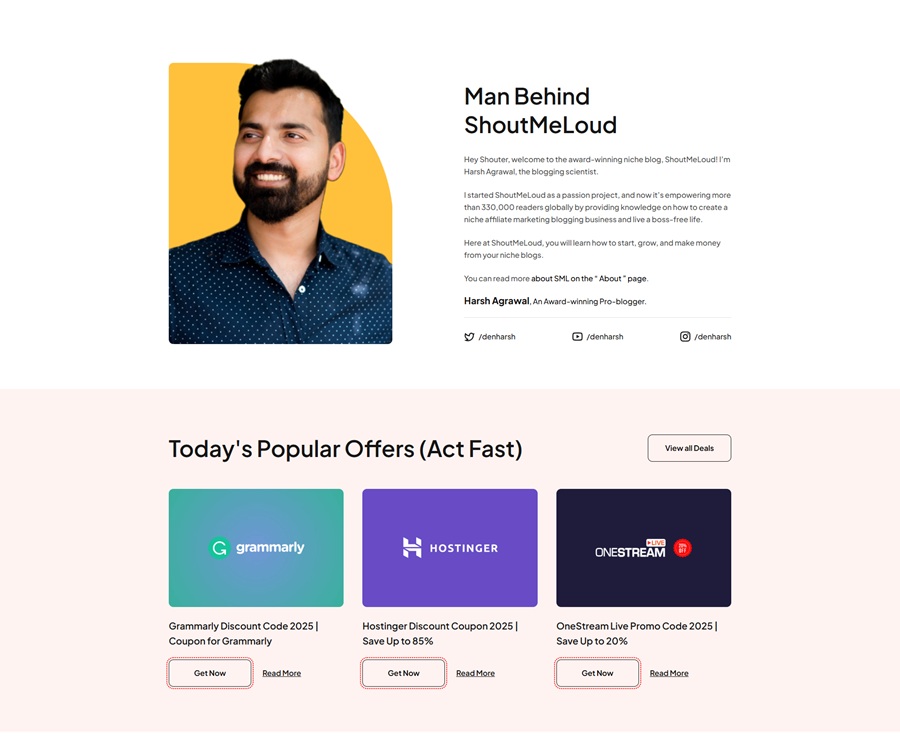 Trên Blog này, Harsh Agrawal thường xuyên chia sẻ các kinh nghiệm về viết blog, WordPress, SEO và các công cụ hỗ trợ làm việc trên Internet.